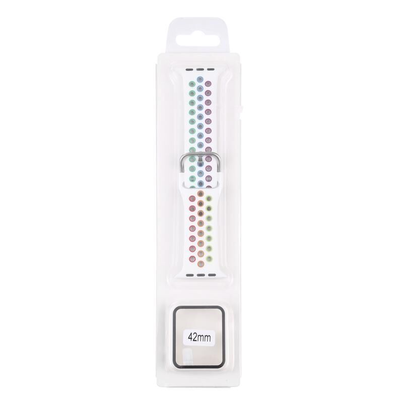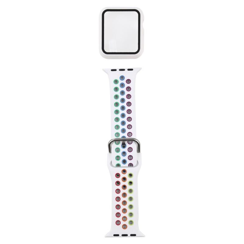 Silicone Watch Band + Protective Case with Screen Protector Set For Apple Watch Series 3 & 2 & 1 42mm(White Colorful)