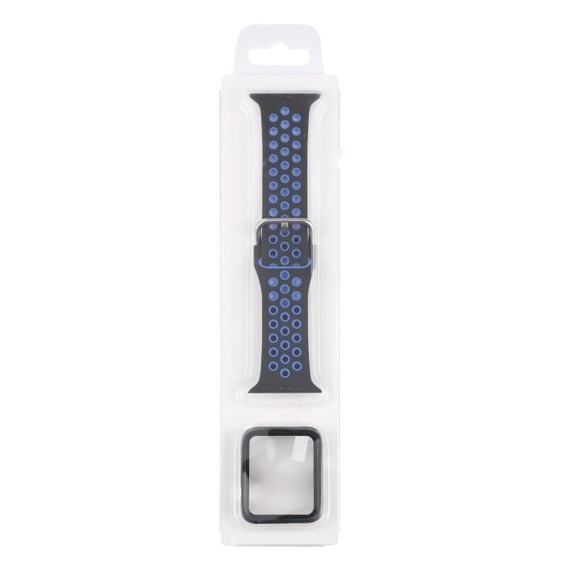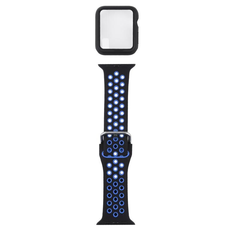 Silicone Watch Band + Protective Case with Screen Protector Set For Apple Watch Series 6 & SE & 5 & 4 40mm(Black Blue)