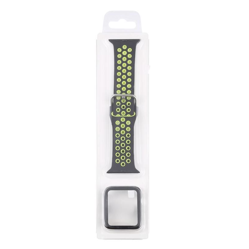 Silicone Watch Band + Protective Case with Screen Protector Set For Apple Watch Series 6 & SE & 5 & 4 40mm(Black Yellow)