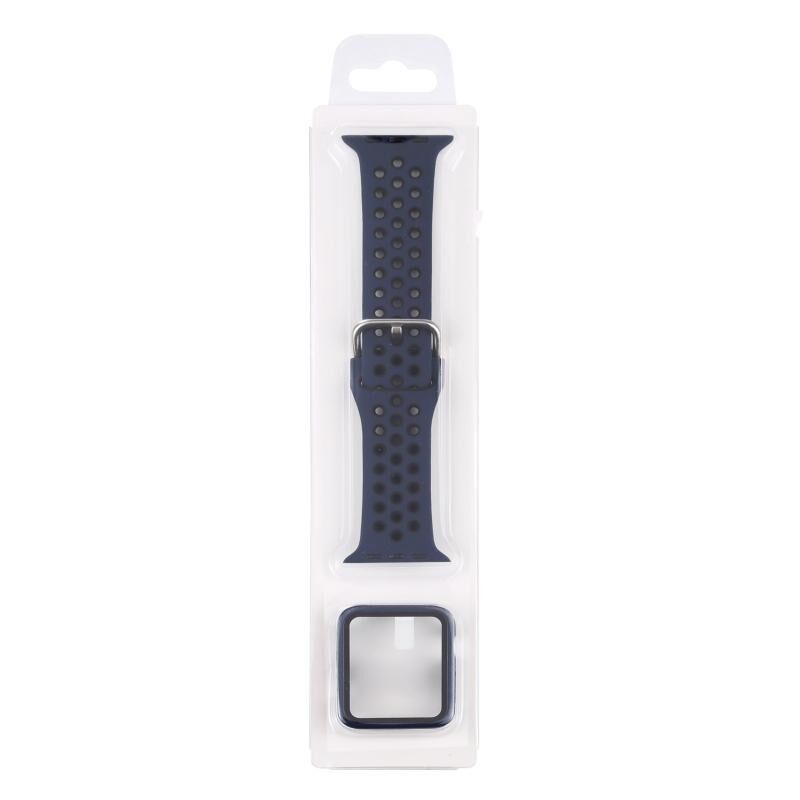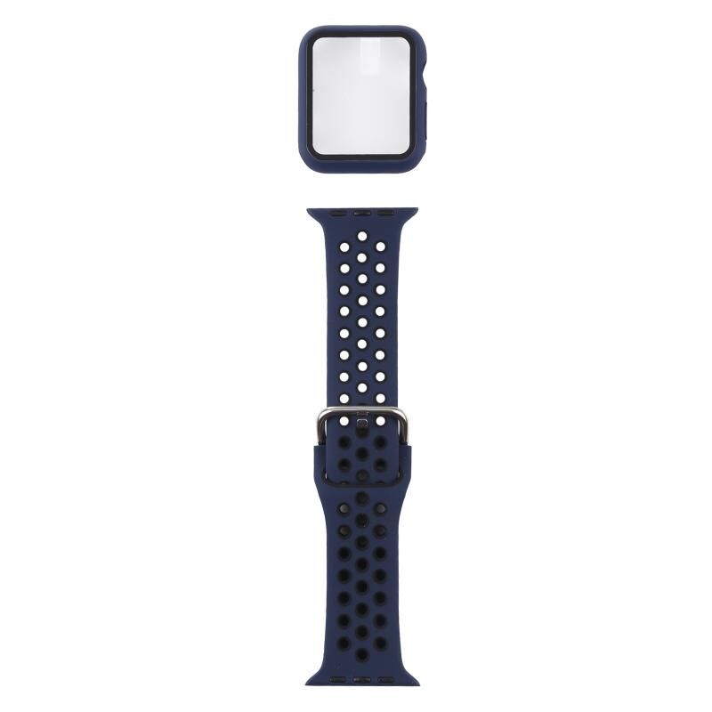 Silicone Watch Band + Protective Case with Screen Protector Set For Apple Watch Series 6 & SE & 5 & 4 40mm(Blue Black)