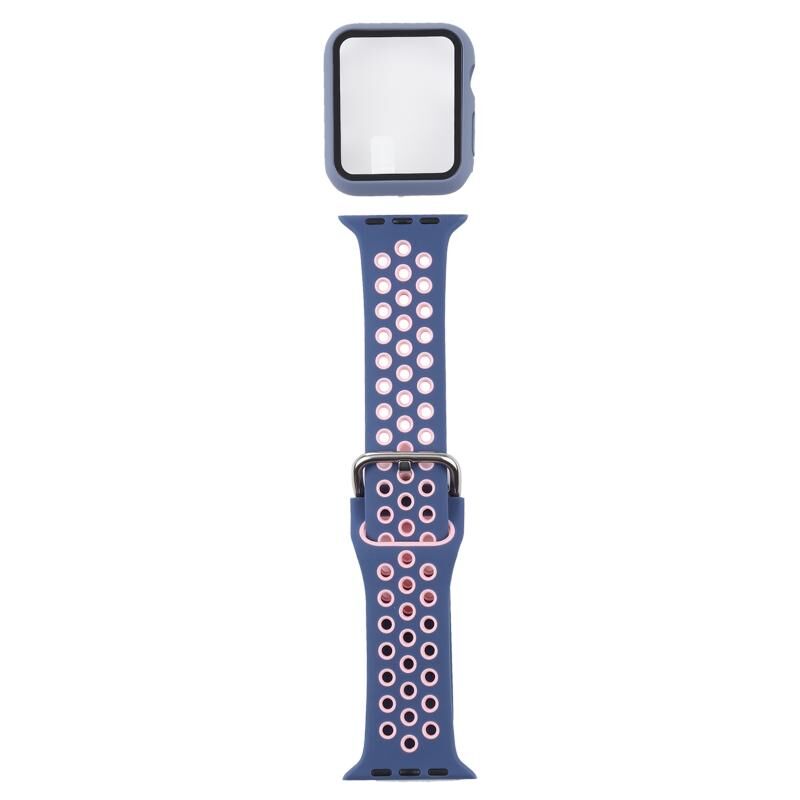 Silicone Watch Band + Protective Case with Screen Protector Set For Apple Watch Series 6 & SE & 5 & 4 40mm(Blue Pink)