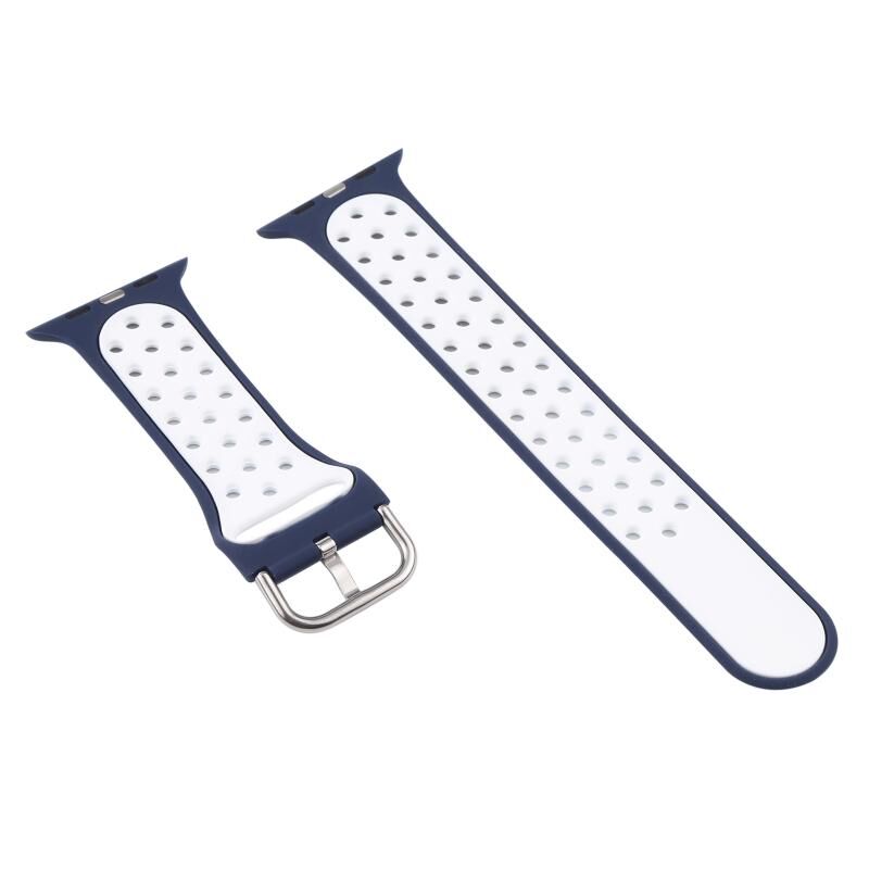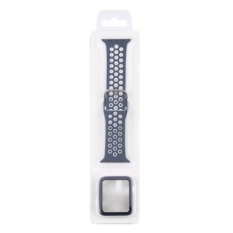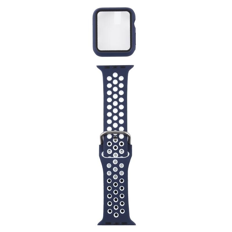Silicone Watch Band + Protective Case with Screen Protector Set For Apple Watch Series 6 & SE & 5 & 4 40mm(Blue White)