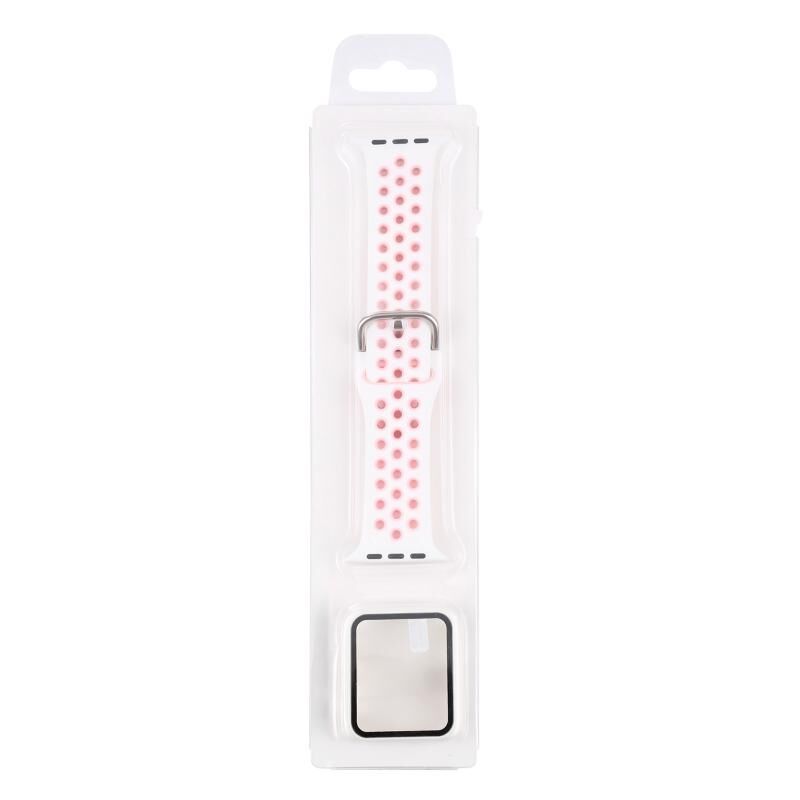 Silicone Watch Band + Protective Case with Screen Protector Set For Apple Watch Series 6 & SE & 5 & 4 40mm(White Pink)