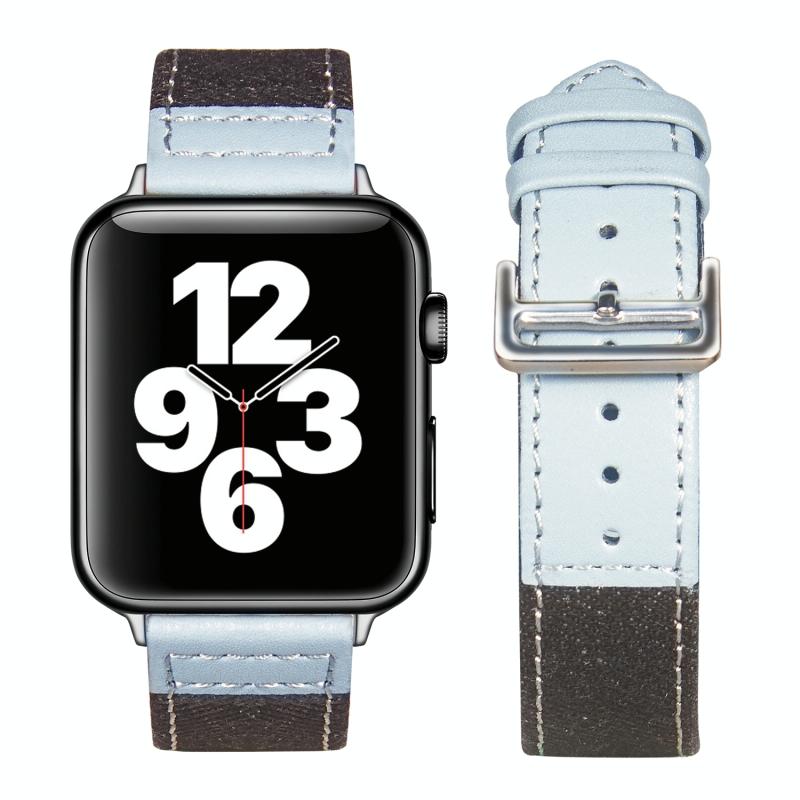 Silver Buckle Leather Strap For Apple Watch Ultra 49mm&Watch Ultra 2 49mm / Series 9&8&7 45mm / SE 3&SE 2&6&SE&5&4 44mm / 3&2&1 42mm(Black + light blue)