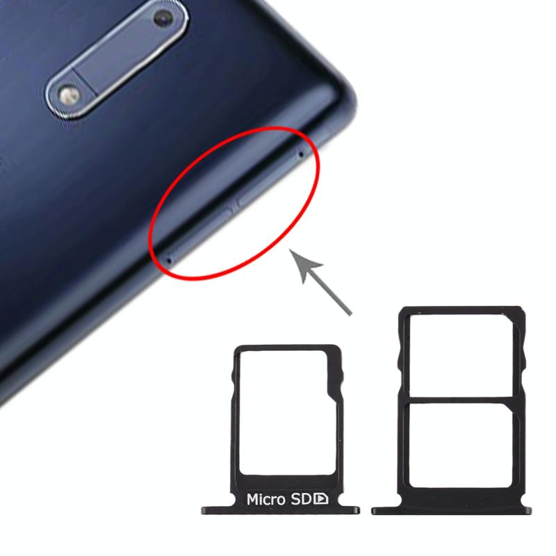 SIM Card Tray + SIM Card Tray + Micro SD Card Tray for Nokia 5 / N5 TA-1024 TA-1027 TA-1044 TA-1053 (Black)