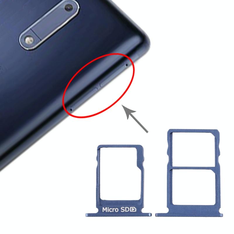 SIM Card Tray + SIM Card Tray + Micro SD Card Tray for Nokia 5 / N5 TA-1024 TA-1027 TA-1044 TA-1053 (Blue)