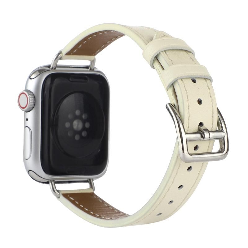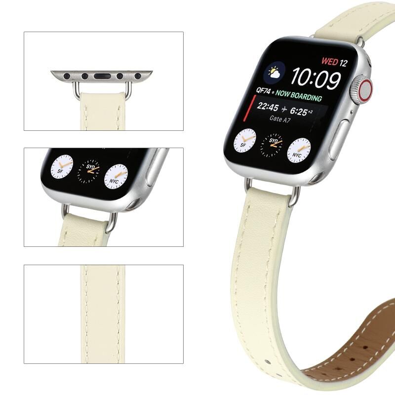 Single Circle 14mm Screw Style Leather Watch Band Watch Band For Apple Watch Series 9&8&7 41mm / SE 3&SE 2&6&SE&5&4 40mm / 3&2&1 38mm(White)