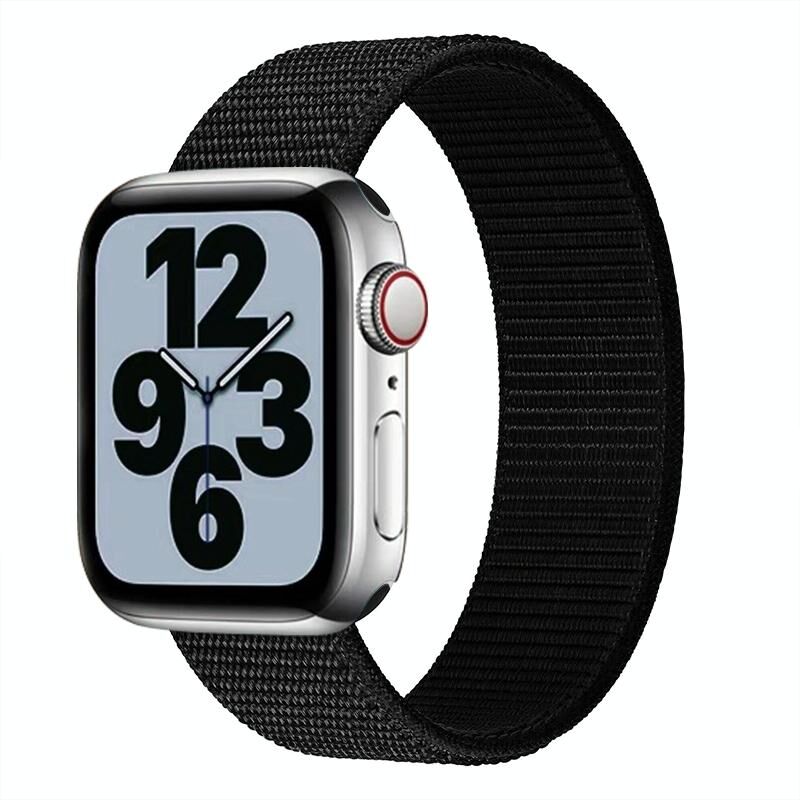 Λουρί ρολογιού από νάιλον μονής θηλιάς, Μέγεθος: M 145mm για Apple Watch Series 9&8&7 41mm / SE 3&SE 2&6&SE&5&4 40mm / 3&2&1 38mm (Καθαρό Μαύρο)