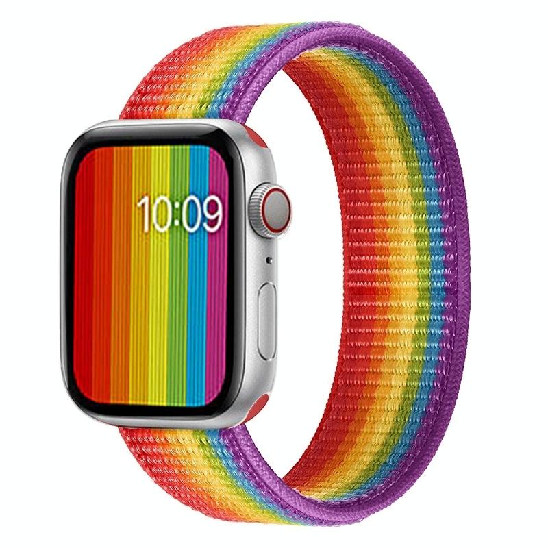 Λουρί ρολογιού από νάιλον μονής θηλιάς, Μέγεθος: S 145mm για Apple Watch Ultra 49mm & Watch Ultra 2 49mm / Series 9 & 8 & 7 45mm / SE 3 & SE 2 & 6 & SE & 5 & 4 44mm / 3 & 2 & 1 42mm (Rainbow)