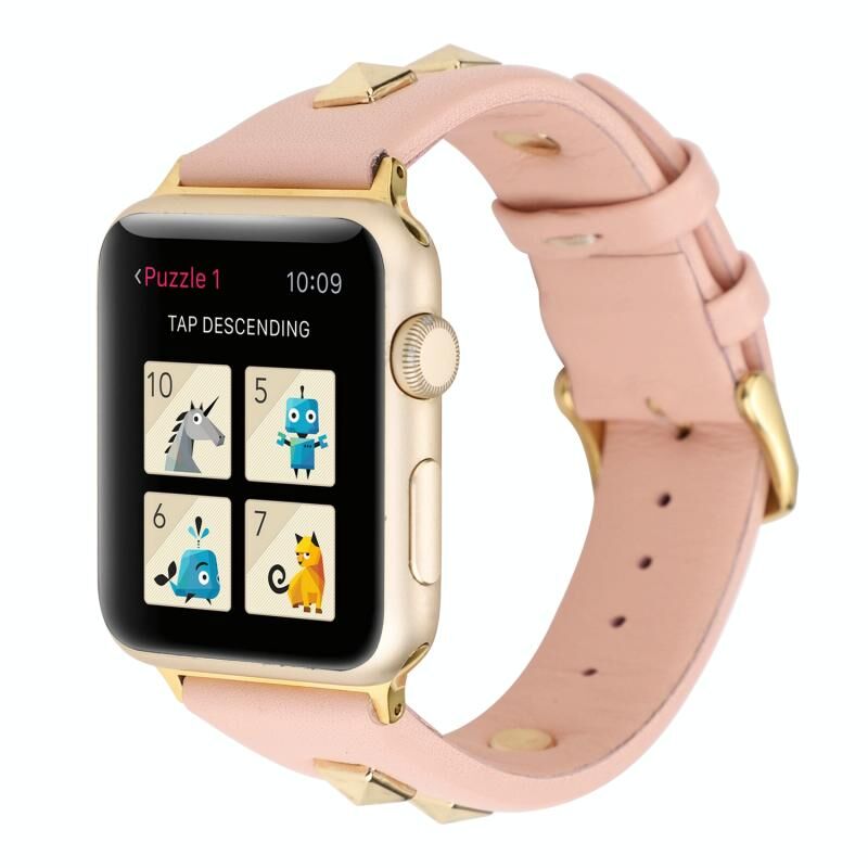 Λουρί ρολογιού από γνήσιο δέρμα με μονή σειρά καρφιά για Apple Watch Ultra 49mm & Watch Ultra 2 49mm / Series 9 & 8 & 7 45mm / SE 3 & SE 2 & 6 & SE & 5 & 4 44mm / 3 & 2 & 1 42mm (Ροζ Χρυσός)
