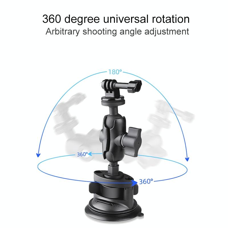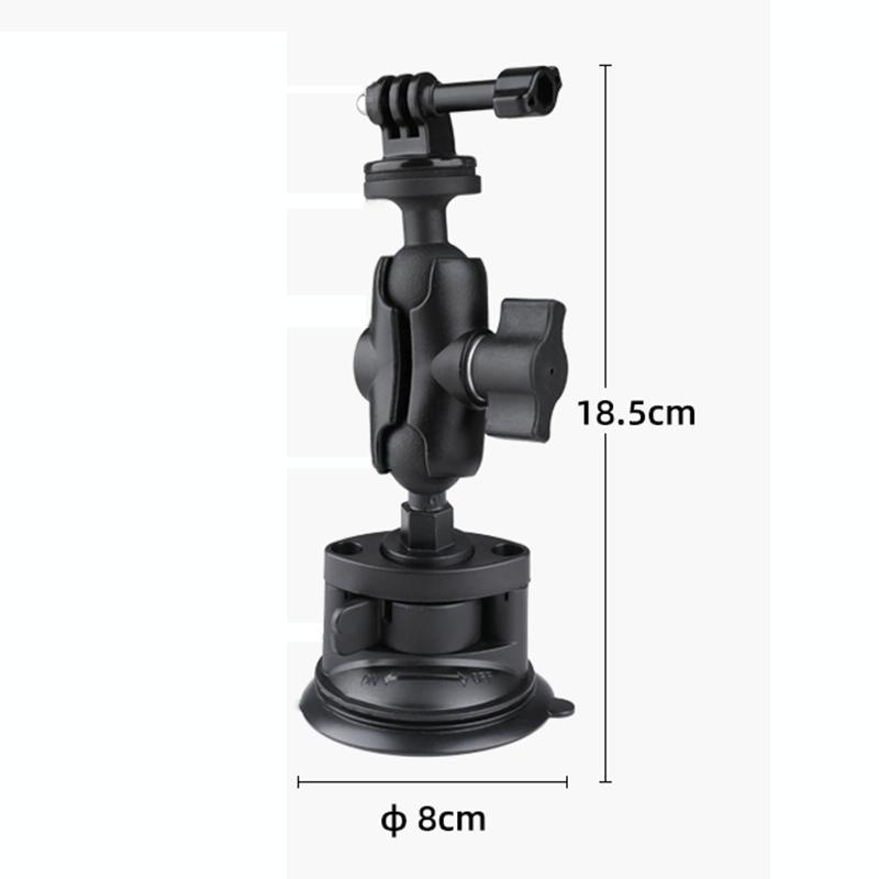 Single Suction Cup Mount Holder with Tripod Adapter & Steel Tether & Safety Buckle (Black)