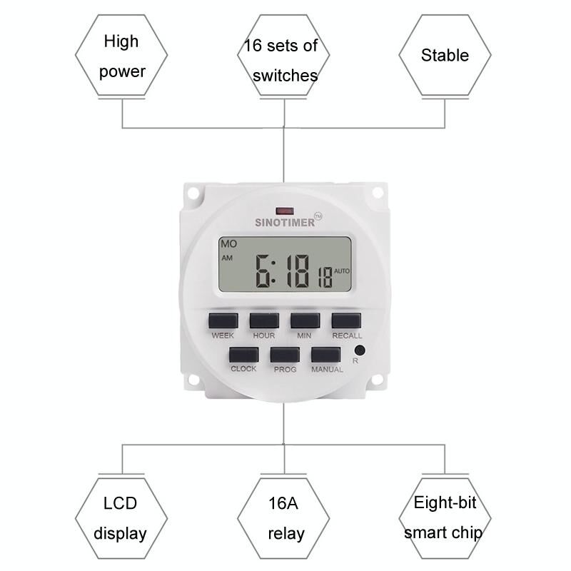SINOTIMER Programmable Timer Switch Time Controller, Model: TM618H-3 24V (SINOTIMER)