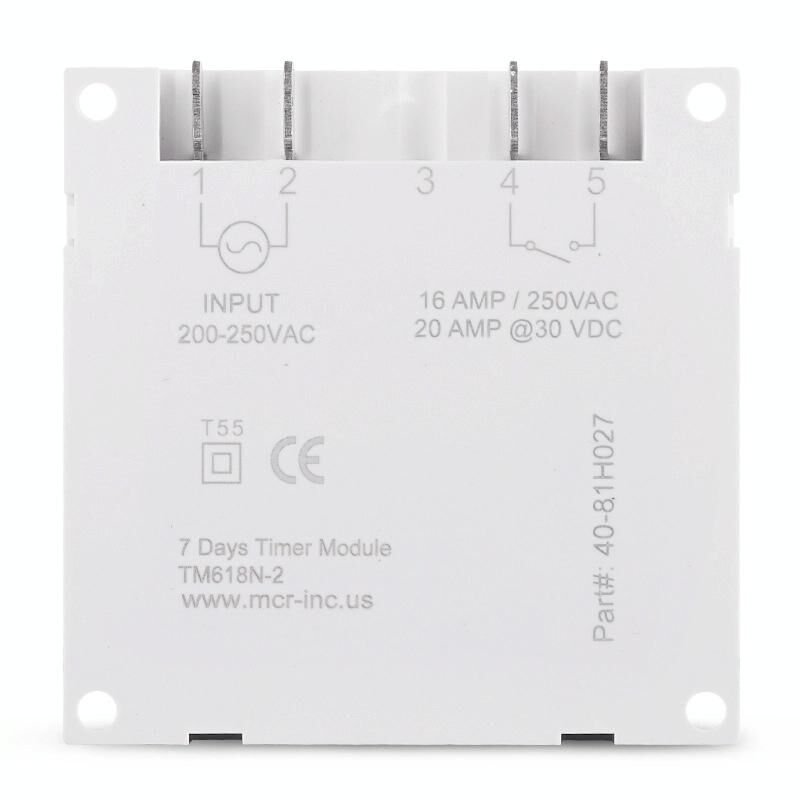 Το TM618 μπορεί να ενεργοποιεί και να απενεργοποιεί αυτόματα διάφορες ηλεκτρικές συσκευές σε προκαθορισμένες ώρες. Χρησιμοποιείται ευρέως στον προγραμματιζόμενο έλεγχο 7 ημερών για φώτα δρόμου, επιγραφές νέον, λαμπτήρες, θερμοσίφωνες, κλιματιστικά, διαφημιστικές πινακίδες, ηλεκτρικές κουζίνες ρυζιού, ενισχυτές, ψεκαστήρες, εμφιαλωτήρες, προθερμαστές, γεωργικές εγκαταστάσεις και εξοπλισμό μετάδοσης, κ.λπ. Ο ψηφιακός χρονοδιακόπτης διαθέτει ενσωματωμένη επαναφορτιζόμενη μπαταρία νικελίου-μετάλλου υδριδίου για να αποθηκεύει το πρόγραμμα όταν διακοπεί η παροχή ρεύματος. Έχει τα χαρακτηριστικά χαμηλής κατανάλωσης ενέργειας, υψηλής ακρίβειας τσιπ CMOS, ισχυρής αντιπαρεμβολής, απλής και εύκολης ρύθμισης, κ.λπ. 3500 Watts / 16 Amps, 1NO Προγραμματιζόμενο 24 ωρών / 7 ημέρες την εβδομάδα Αυτόματη διόρθωση σφάλματος χρόνου +/- 30 δευτερόλεπτα την εβδομάδα Επαναλαμβανόμενο πρόγραμμα με 16 ρυθμίσεις ενεργοποίησης/απενεργοποίησης και χειροκίνητη ρύθμιση ενεργοποίησης/απενεργοποίησης Τεχνικά δεδομένα: 1. Μέθοδος εκκίνησης: Παθητική έξοδος 2. Εύρος θερμοκρασίας: -20 έως +50 βαθμούς Κελσίου 3. Κατανάλωση ενέργειας: 4,5 VA (μέγιστο) 4. Οθόνη: 1,6 ιντσών LCD 5. Επαφές διακόπτη: 1 διακόπτης αλλαγής 6. Πρόγραμμα: 16 ενεργοποιήσεις/απενεργοποιήσεις ανά ημέρα ή ανά εβδομάδα 7. Υστέρηση: 2 δευτερόλεπτα/ημέρα (25 βαθμοί Κελσίου) 8. Ελάχιστο διάστημα: 1 λεπτό 9. Χωρητικότητα: 16A 250V AC 10. Διακοπή ρεύματος: 60 ημέρες 11. Εύρος χρονοδιακόπτη: 1 λεπτό ~ 168 ώρες 12. Επαναφορτιζόμενη μπαταρία: 3V 13. Μέσος όρος σφάλματος: 1 δευτερόλεπτο/24 ώρες, 25 βαθμοί Κελσίου