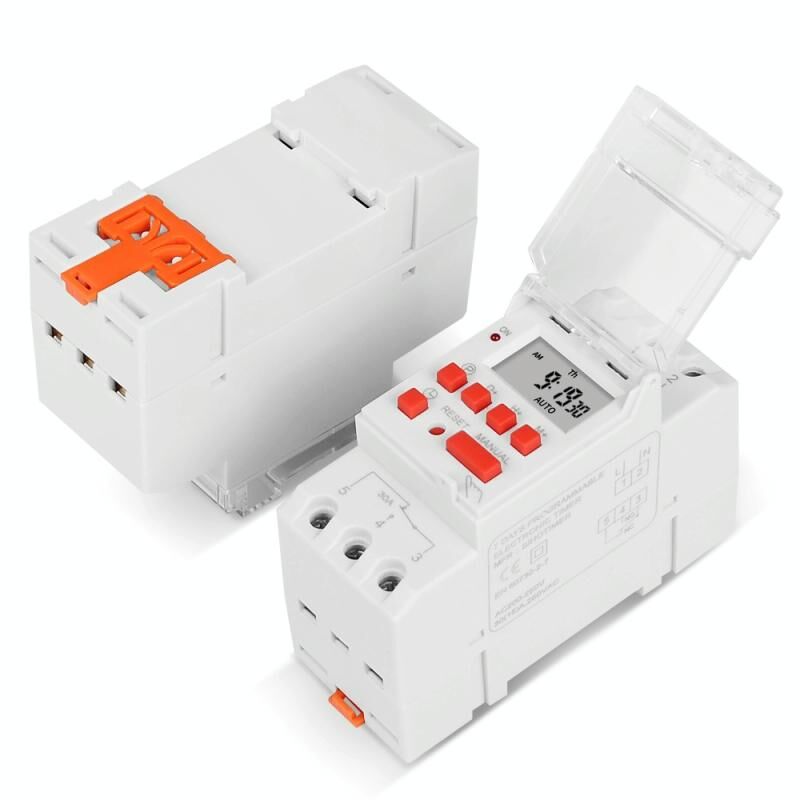 TM919B (φορτίο 30Amp) χρονοδιακόπτης DIN rail 7 ημερών 24 ωρών, προγραμματιζόμενος, μπορεί να ενεργοποιεί και να απενεργοποιεί αυτόματα διάφορες ηλεκτρικές συσκευές σε προκαθορισμένες ώρες. Χρησιμοποιείται ευρέως για προγραμματιζόμενο έλεγχο 7 ημερών σε φώτα δρόμου, φώτα νέον, πινακίδες, λάμπες, θερμοσίφωνες, κλιματιστικά, διαφημιστικές πινακίδες, ηλεκτρικές κουζίνες ρυζιού, ενισχυτές, ψεκαστήρες, μηχανές εμφιάλωσης, προθερμαστές, γεωργικές εγκαταστάσεις και εξοπλισμό μετάδοσης. Ενσωματωμένη επαναφορτιζόμενη μπαταρία 1.2V/40mA για αποθήκευση προγραμμάτων σε περίπτωση διακοπής ρεύματος. Έχει τα χαρακτηριστικά χαμηλής κατανάλωσης ενέργειας, υψηλής ακρίβειας τσιπ CMOS, ισχυρής αντιπαρεμβολής και απλής ρύθμισης. Προδιαγραφές: 1. Τροφοδοσία: AC220V/DC24V /DC12V / DC5V / AC85-265V/AC110V 2. Επαφή διακόπτη: 1 διακόπτης 3. Πρόγραμμα: Ενεργοποίηση/απενεργοποίηση 16 φορές την ημέρα ή την εβδομάδα 4. Ελάχιστο διάστημα: 1 λεπτό 5. Εύρος χρονισμού: 1 λεπτό~168 ώρες 6. Μέσο σφάλμα: 1 δευτερόλεπτο/24 ώρες, 25 βαθμοί Κελσίου