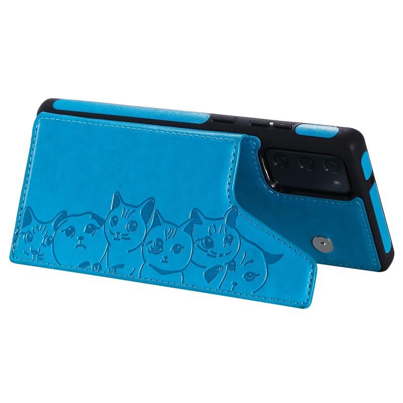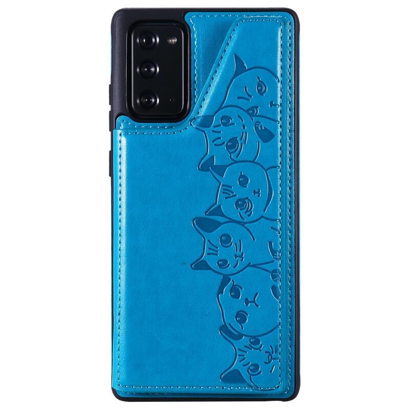 Θήκη προστασίας με ανάγλυφο σχέδιο έξι γατών, με θήκη και υποδοχές για κάρτες & κορνίζα φωτογραφιών για Samsung Galaxy Note20 (Μαύρο)