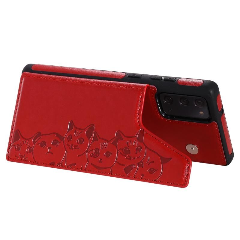 Θήκη προστασίας με ανάγλυφο σχέδιο έξι γατών, με θήκη και υποδοχές για κάρτες & κορνίζα φωτογραφιών για Samsung Galaxy Note20 (Μαύρο)