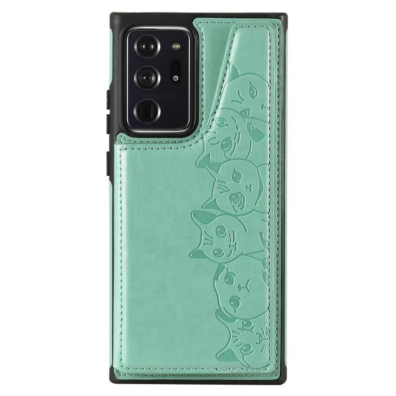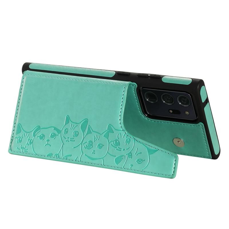 Θήκη προστασίας με ανάγλυφο σχέδιο έξι γατών, με θήκη και υποδοχές για κάρτες & κορνίζα φωτογραφιών για Samsung Galaxy Note20 Ultra (Μπλε)