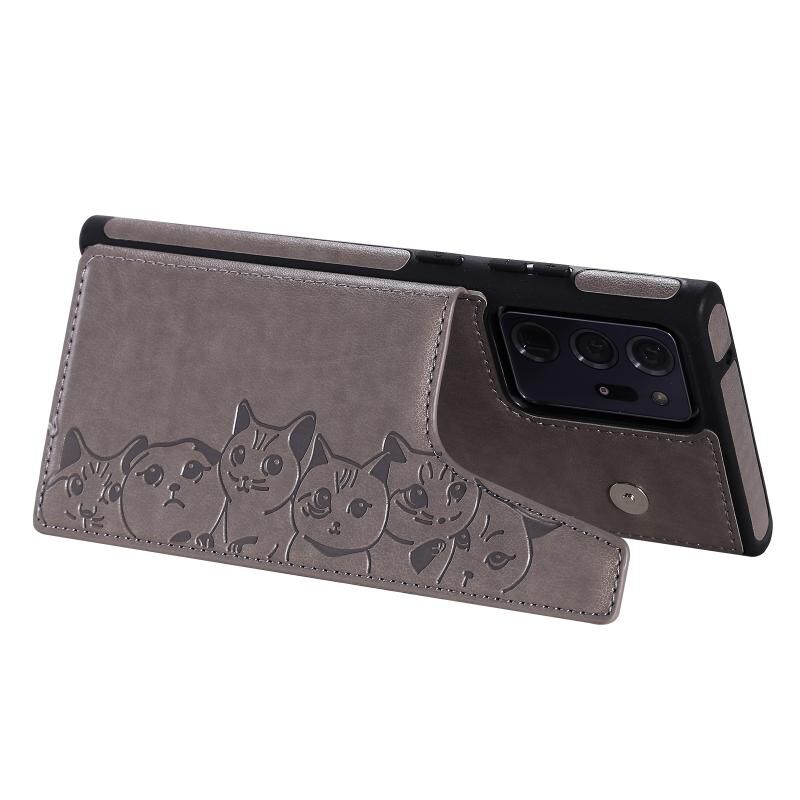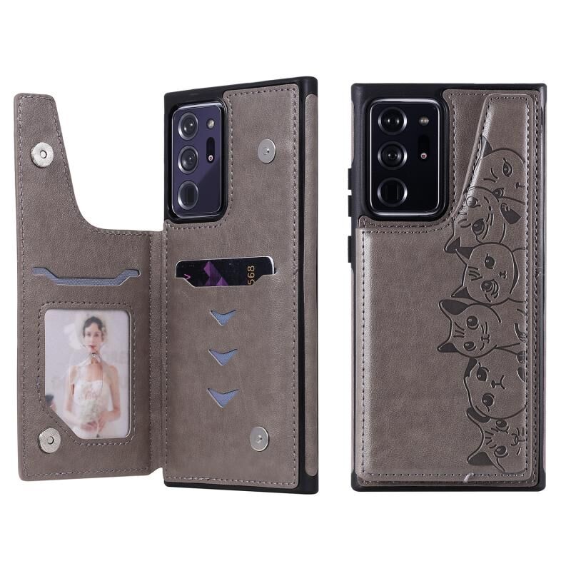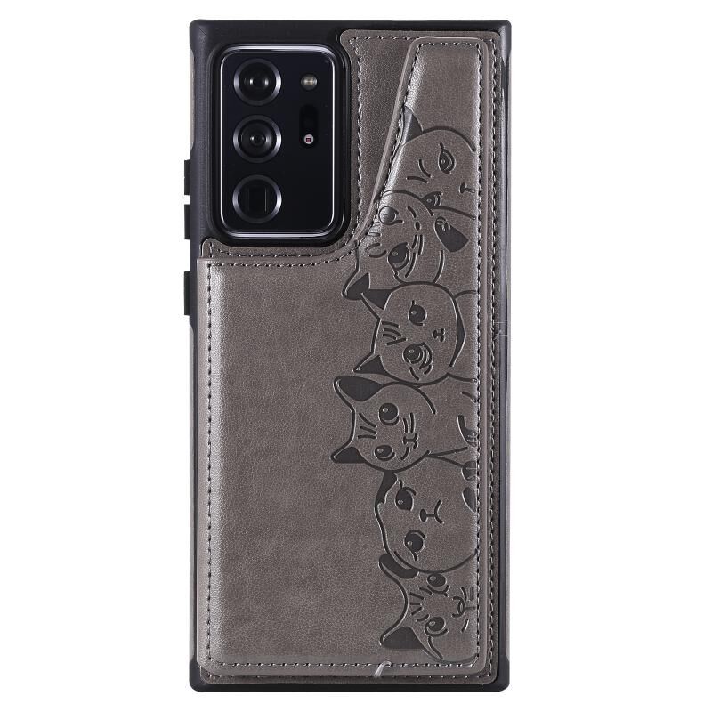Θήκη προστασίας με ανάγλυφο σχέδιο έξι γατών, με θήκη και υποδοχές για κάρτες & κορνίζα φωτογραφιών για Samsung Galaxy Note20 Ultra (Μπλε)