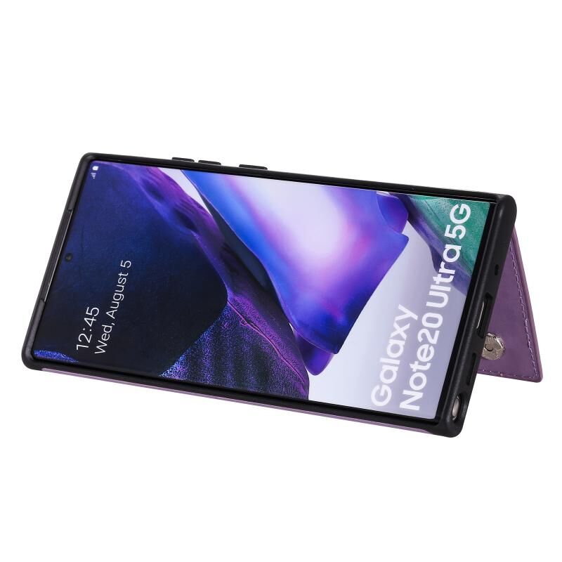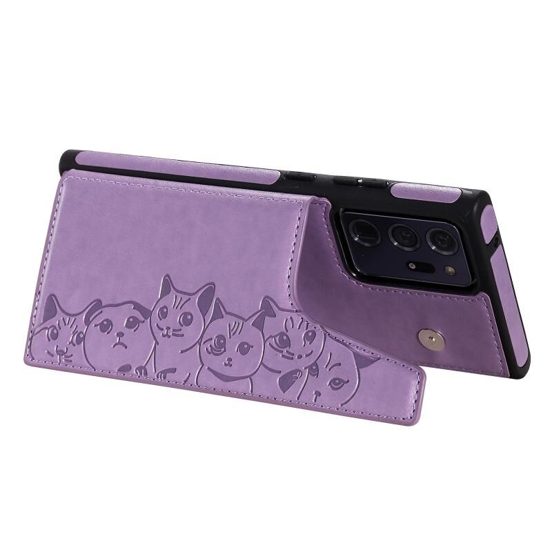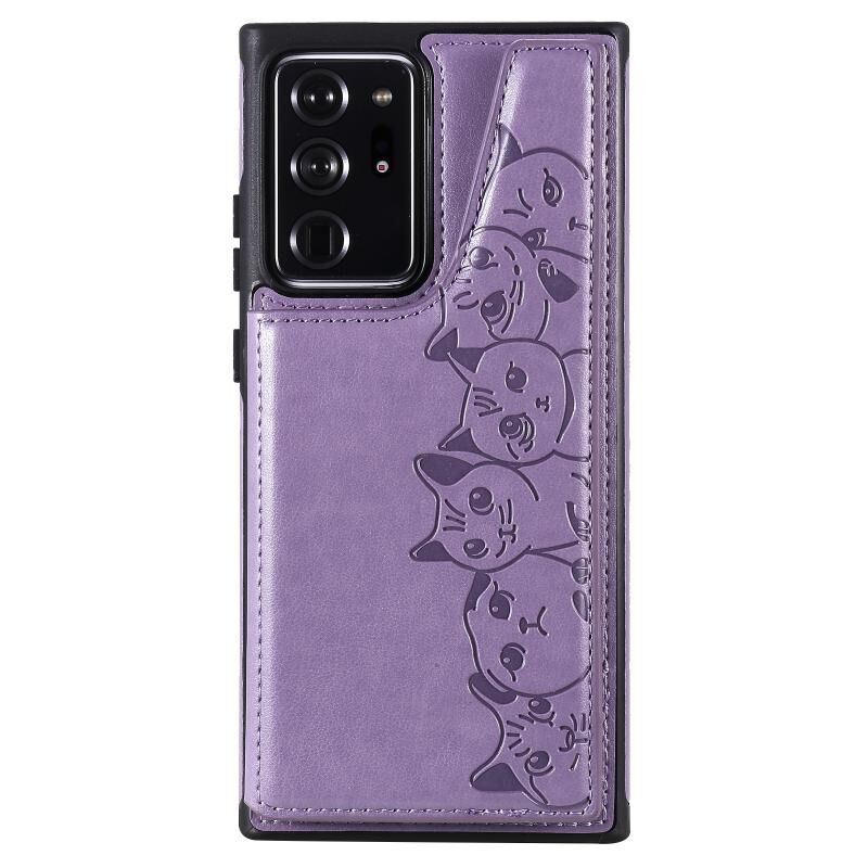 Θήκη προστασίας με ανάγλυφο σχέδιο έξι γατών, με θήκη και υποδοχές για κάρτες & κορνίζα φωτογραφιών για Samsung Galaxy Note20 Ultra (Μπλε)