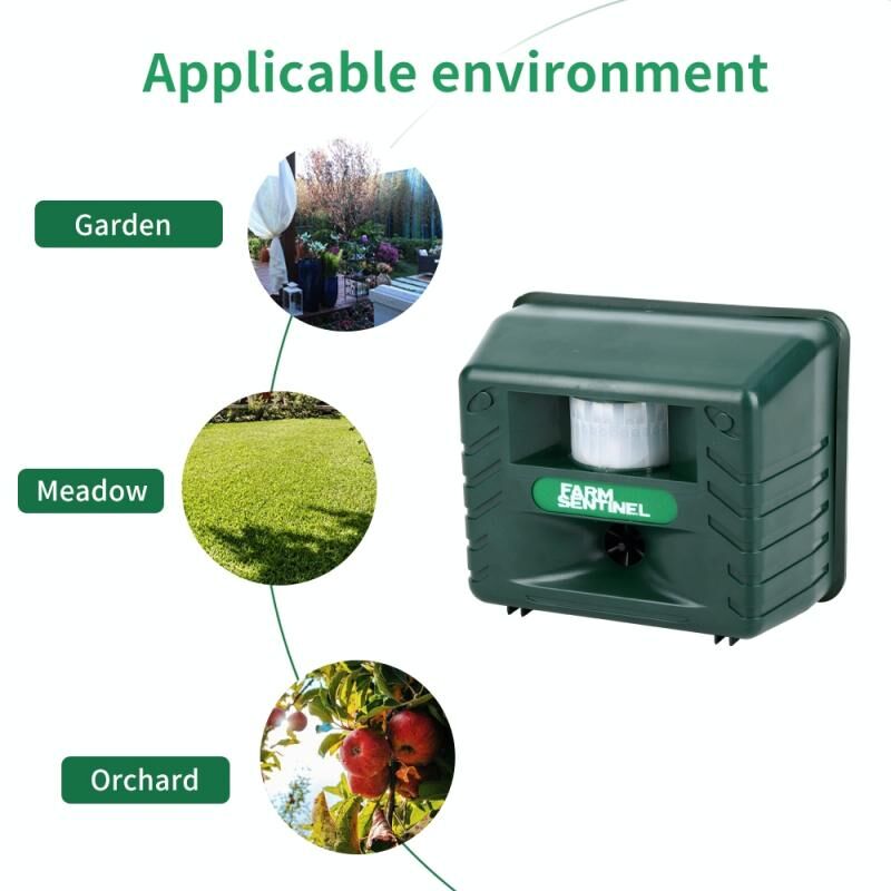 8. Ο ρυθμιζόμενος υπερηχητικός διακόπτης στοχεύει τα περισσότερα παράσιτα, συμπεριλαμβανομένων των ρακούν, ελαφιών, σκανκ, ποντικιών, σκίουρων και άλλων. Διαθέτει προαιρετικό συναγερμό θηρευτή για να φοβίσει ακόμη και μεγάλα θηρευτικά ζώα όπως οι αρκούδες