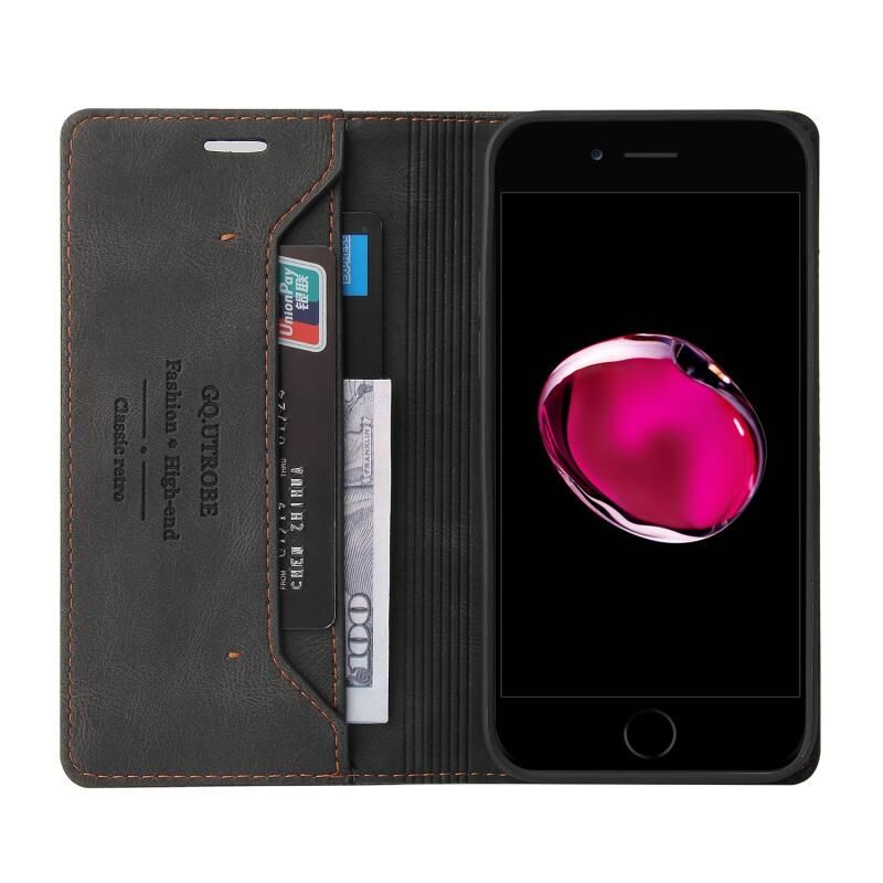 Skin Feel Anti-theft Brush Horizontal Flip Leather Case with Holder & Card Slots & Wallet For iPhone 8 Plus & 7 Plus(Black)