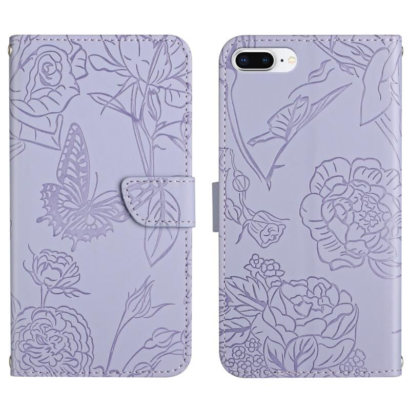 Θήκη τηλεφώνου από δέρμα με ανάγλυφο σχέδιο πεταλούδας και παιώνιας για iPhone 8 Plus / 7 Plus (Κόκκινο)