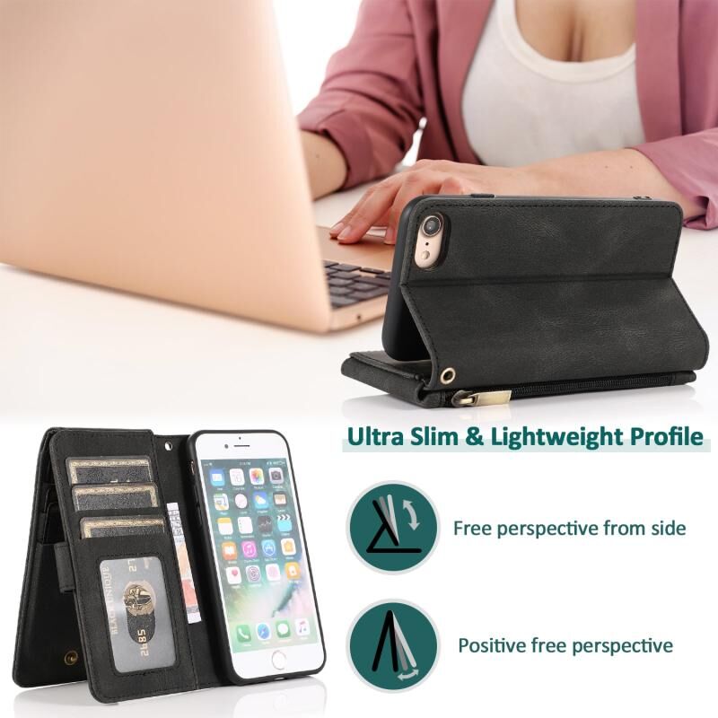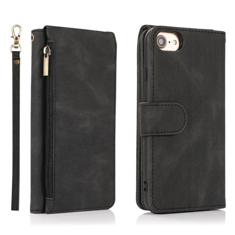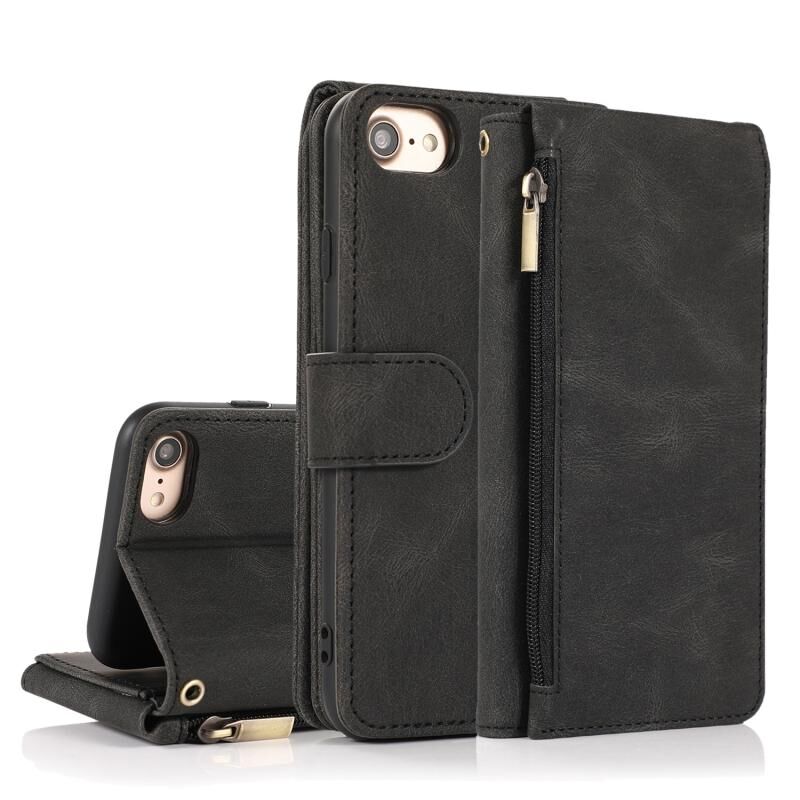Skin-feel Crazy Horse Texture Zipper Wallet Bag Horizontal Flip Leather Case with Holder & Card Slots & Wallet & Lanyard For iPhone 6(Black)