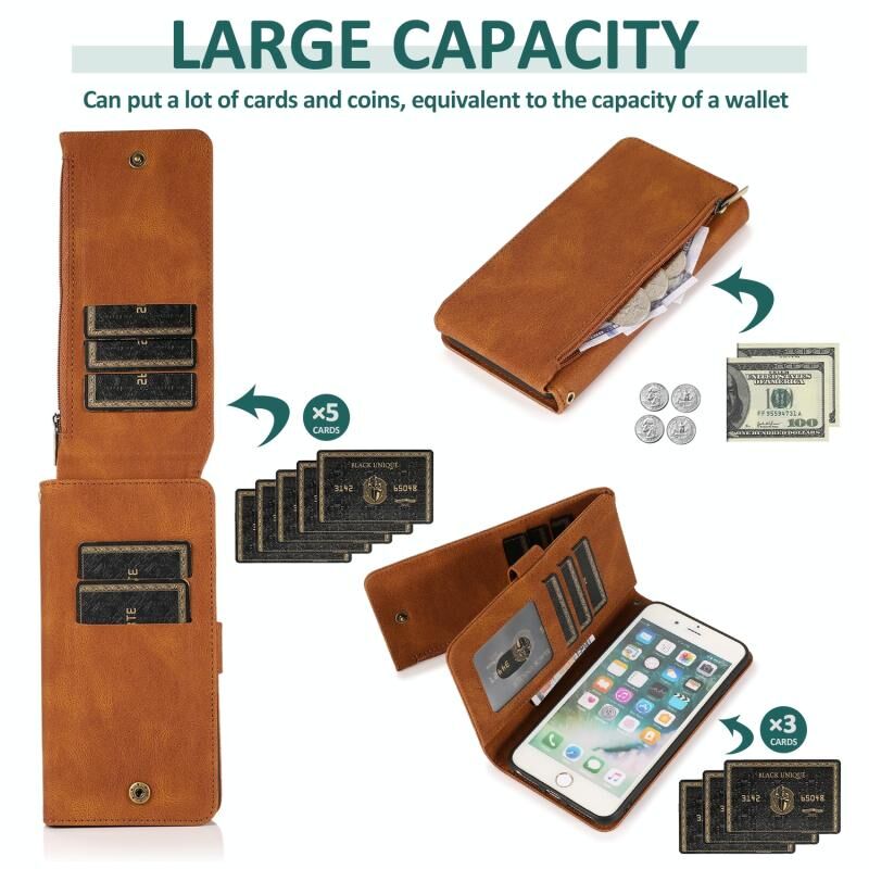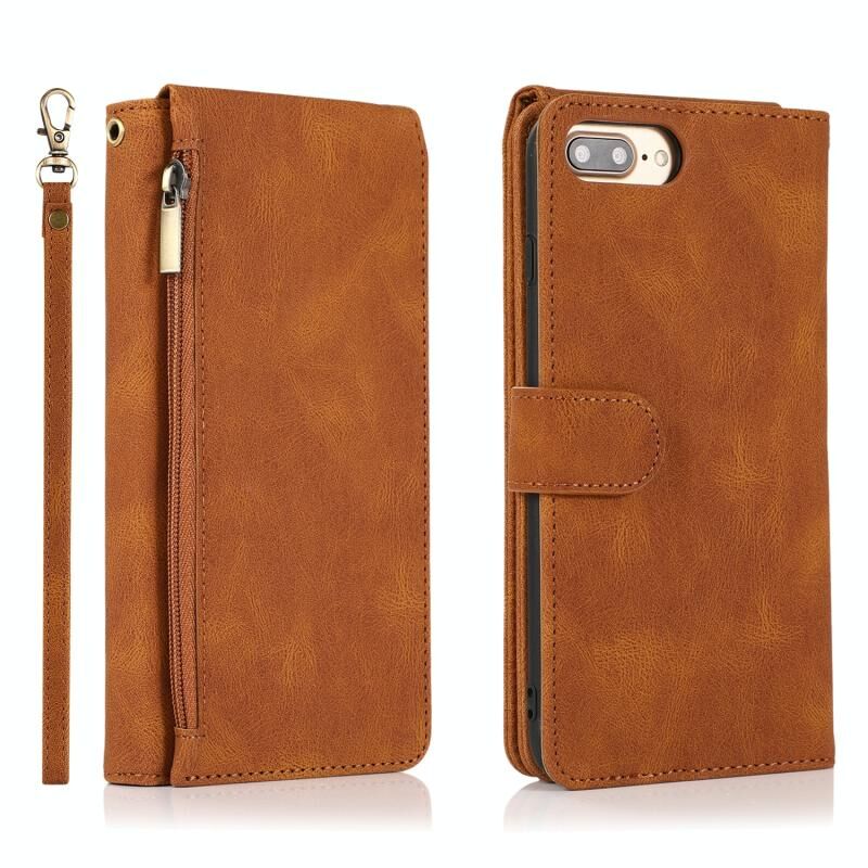 Skin-feel Crazy Horse Texture Zipper Wallet Bag Horizontal Flip Leather Case with Holder & Card Slots & Wallet & Lanyard For iPhone 6 Plus(Brown)