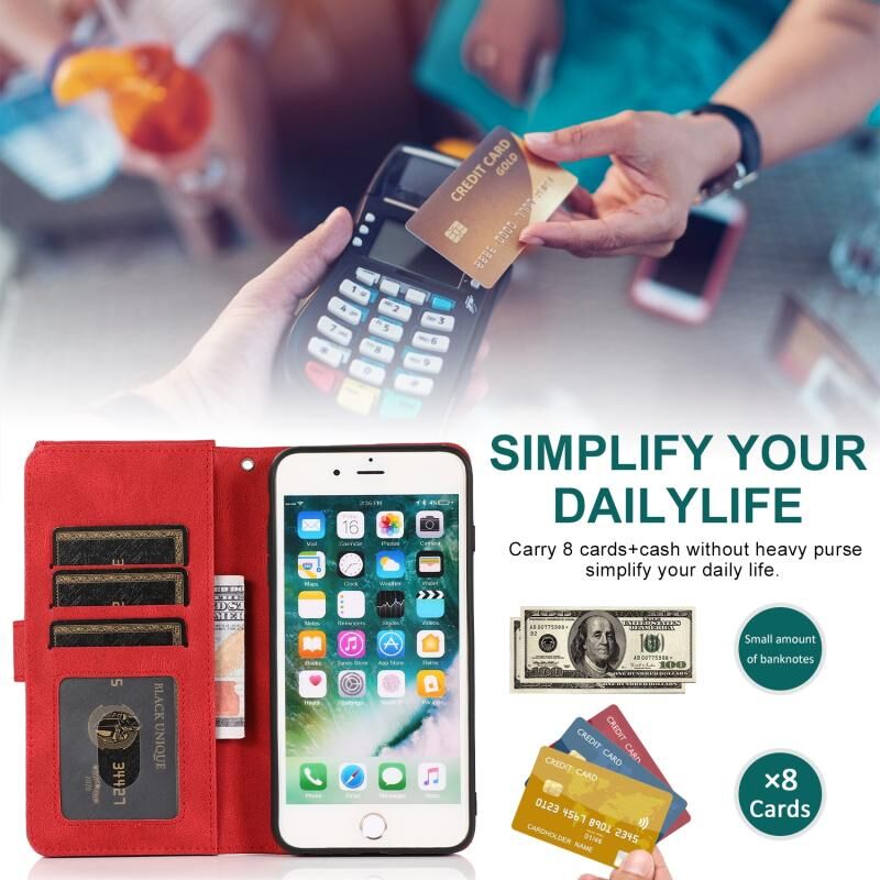 Skin-feel Crazy Horse Texture Zipper Wallet Bag Horizontal Flip Leather Case with Holder & Card Slots & Wallet & Lanyard For iPhone 6 Plus(Red)