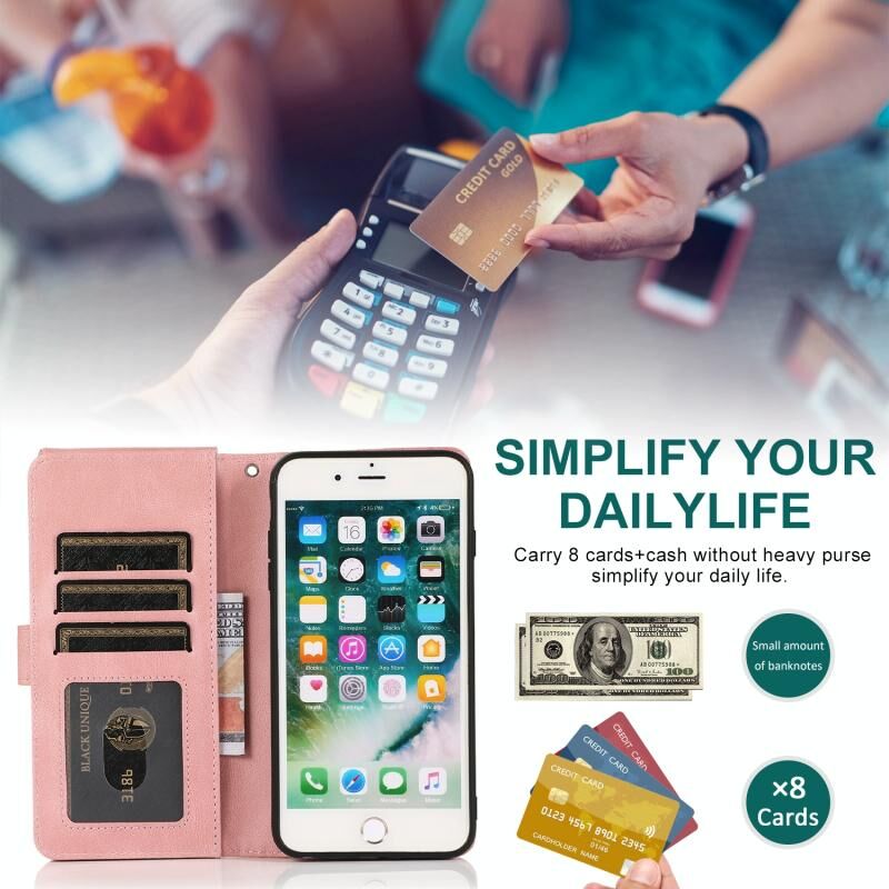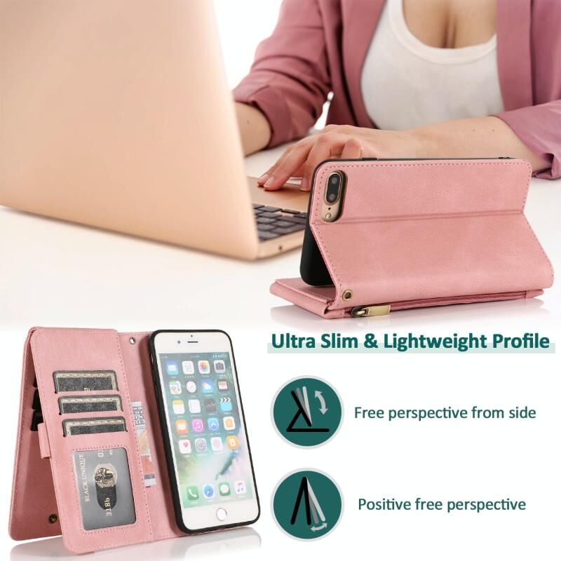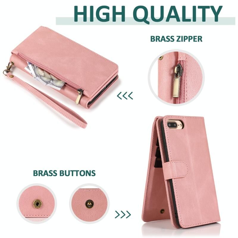 Skin-feel Crazy Horse Texture Zipper Wallet Bag Horizontal Flip Leather Case with Holder & Card Slots & Wallet & Lanyard For iPhone 8 Plus / 7 Plus(Rose Gold)