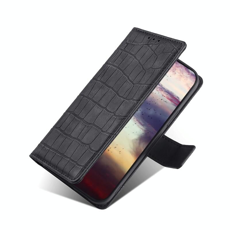 Skin Feel Crocodile Texture Μαγνητικό κούμπωμα Οριζόντια Flip PU δέρμα υπόθεση με κάτοχο & υποδοχές καρτών & πορτοφόλι για OnePlus Nord 2 5G (μαύρο)