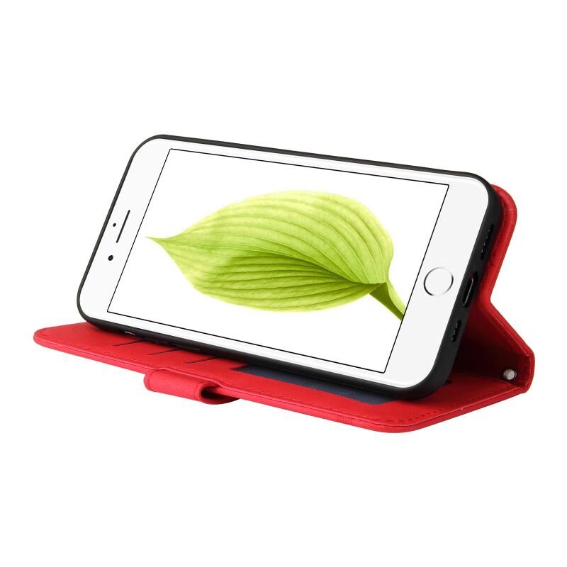 Skin Feel Life Tree Metal Button Horizontal Flip Leather Case with Holder & Card Slot & Wallet & Photo Frame & Strap For iPhone 6 Plus / 6s Plus(Red)