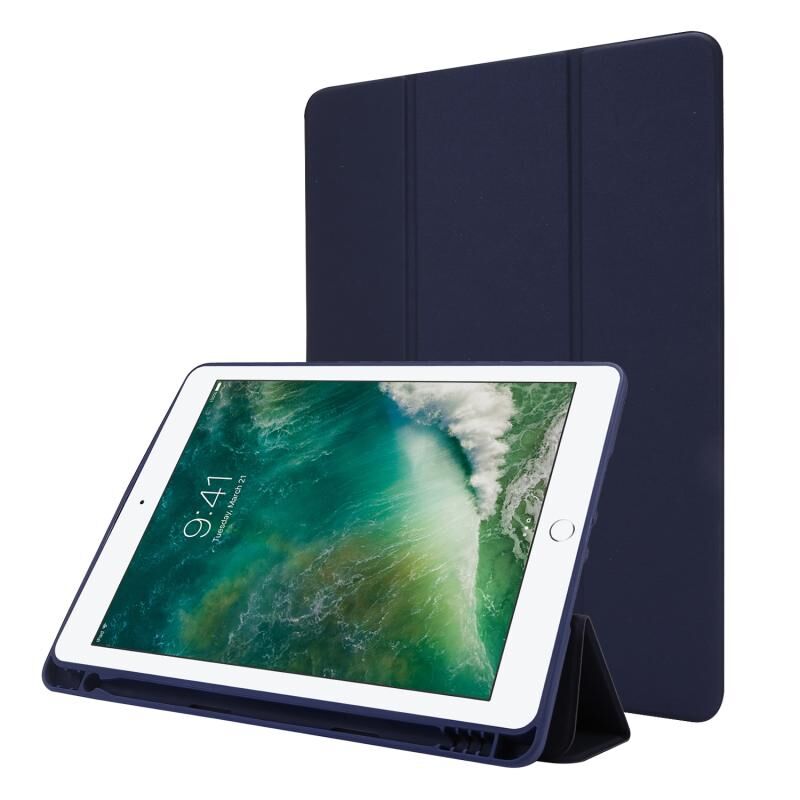 Θήκη δέρματος τριπλής πτυχής για iPad Air 2 / Air / 9.7 2018 / 9.7 2017 με υφή δέρματος και υποδοχή για στυλό (Ανοιχτό Μπλε)