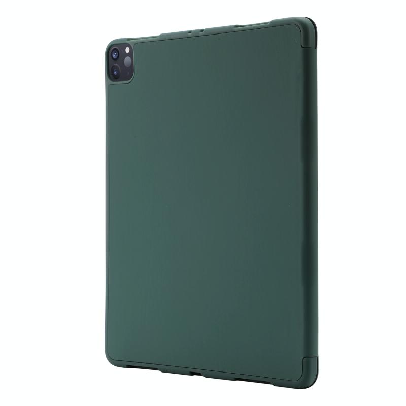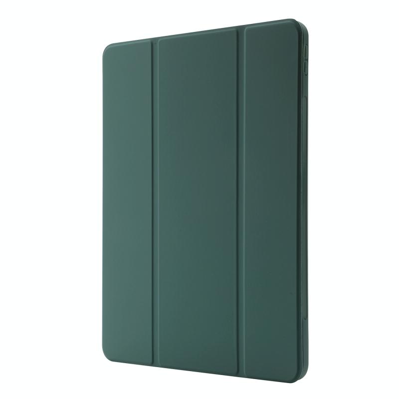 Skin Feel Pen Holder Tri-fold Tablet Leather Case For iPad Pro 11 2022 / 2021 / 2020 / 2018(Dark Green)