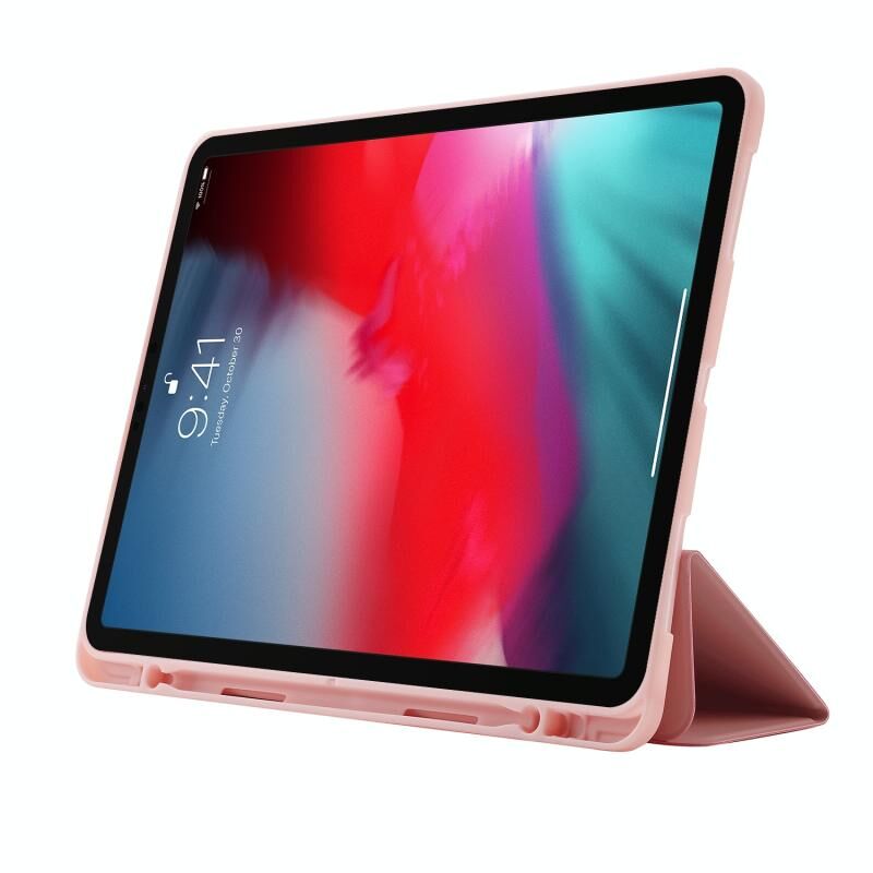 Skin Feel Pen Holder Tri-fold Tablet Leather Case For iPad Pro 11 2022 / 2021 / 2020 / 2018(Pink)