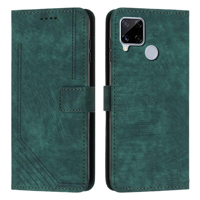 Skin Feel Stripe Pattern Δερμάτινη θήκη τηλεφώνου με κορδόνι για Realme C12 / C15 / C25 / C25s / 7i Global / Narzo 20 / Narzo 30A (πράσινο)