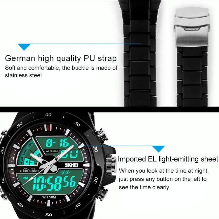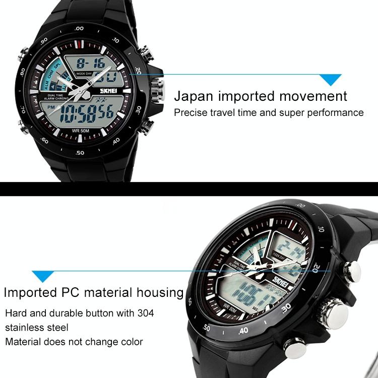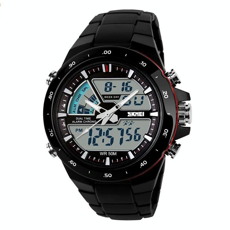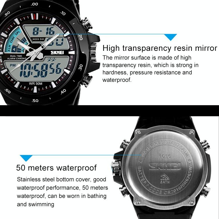 SKMEI 1016 Multifunctional Men Outdoor Sports Noctilucent Waterproof Double Digital Watch (Red + Black) (SKMEI)