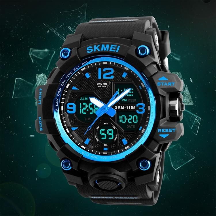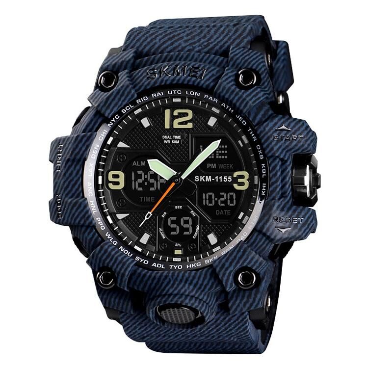 SKMEI 1155B Multifunctional Men Outdoor Sports Noctilucent Waterproof Large Dial Wrist Watch(Denim Blue) (SKMEI)