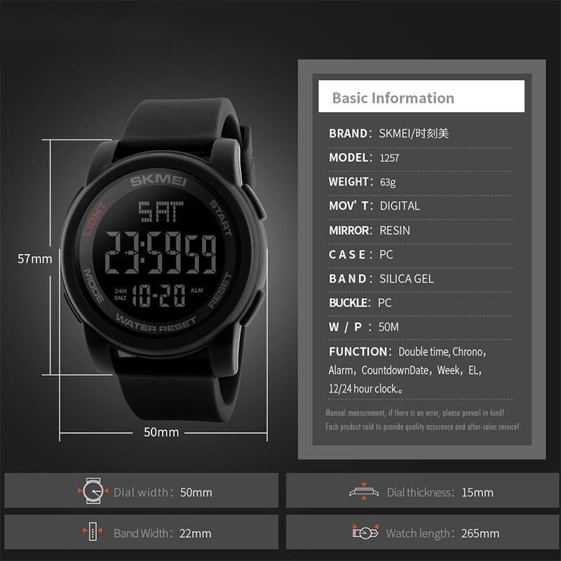 SKMEI 1257 Ανδρικό Μόδα Εξωτερικού Αδιάβροχο 50m Ψηφιακό Ρολόι Αθλητικό Ρολόι Χεριού (Στρατιωτικό Πράσινο) (SKMEI)