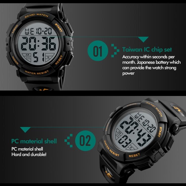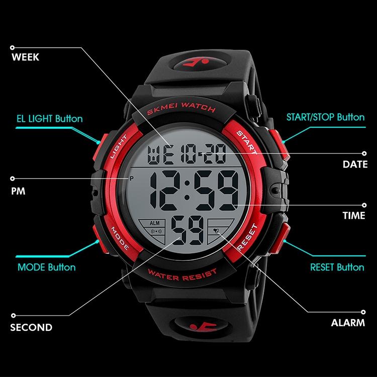 5. Λειτουργία: εμφάνιση ώρας, χρονομέτρηση, φωτεινότητα, εμφάνιση ημερομηνίας, χρονόμετρο συναγερμού, εμφάνιση ημέρας, σύστημα 12/24 ωρών