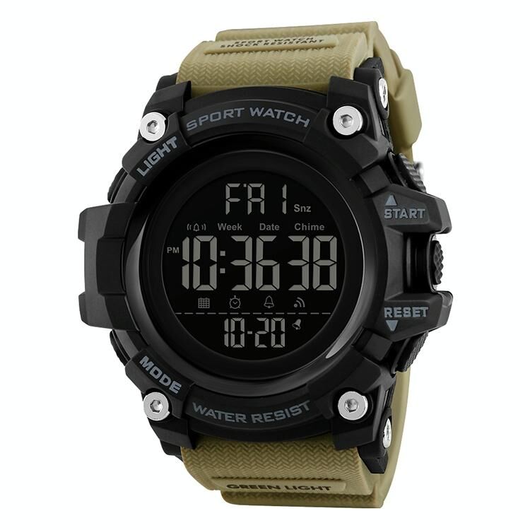 SKMEI 1384 Πολυλειτουργικό Ανδρικό Εξωτερικού Χώρου Μόδα Φωτεινό Αδιάβροχο Ψηφιακό Ρολόι LED (Στρατιωτικό Πράσινο) (SKMEI)