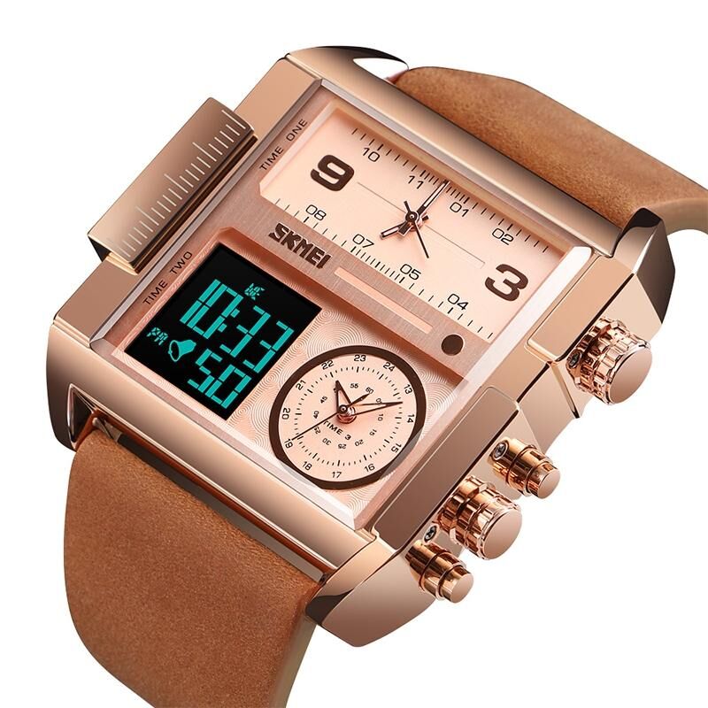 SKMEI 1391 Πολυλειτουργικό Ανδρικό Επιχειρηματικό Ψηφιακό Ρολόι 30m Αδιάβροχο Τετράγωνο Καντράν με Δερμάτινο Λουρί (Μαύρο Καφέ) (SKMEI)