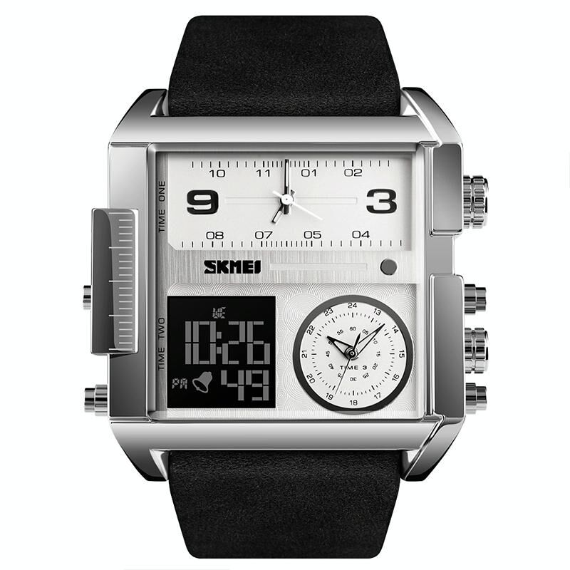 SKMEI 1391 Πολυλειτουργικό Ανδρικό Επιχειρηματικό Ψηφιακό Ρολόι 30m Αδιάβροχο Τετράγωνο Καντράν με Δερμάτινο Λουρί (Μαύρο Καφέ) (SKMEI)