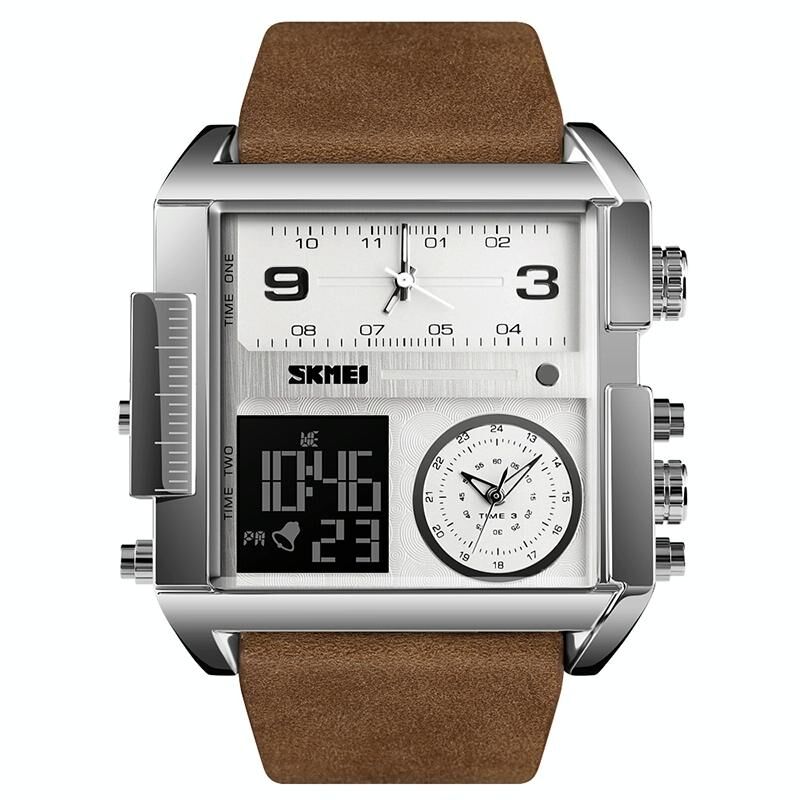 SKMEI 1391 Πολυλειτουργικό Ανδρικό Επιχειρηματικό Ψηφιακό Ρολόι 30m Αδιάβροχο Τετράγωνο Καντράν με Δερμάτινο Λουρί (Μαύρο Καφέ) (SKMEI)
