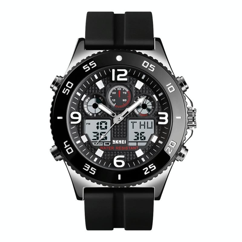 SKMEI 1538 Πολυλειτουργικό Ρολόι Χρόνου με Μεγάλο Καντράν, Ατσάλινο Λουρί, Ανδρικό Casual Αθλητικό Ηλεκτρονικό Ρολόι (Χρυσό Ρόδι - Λουρί Σιλικόνης) (SKMEI)