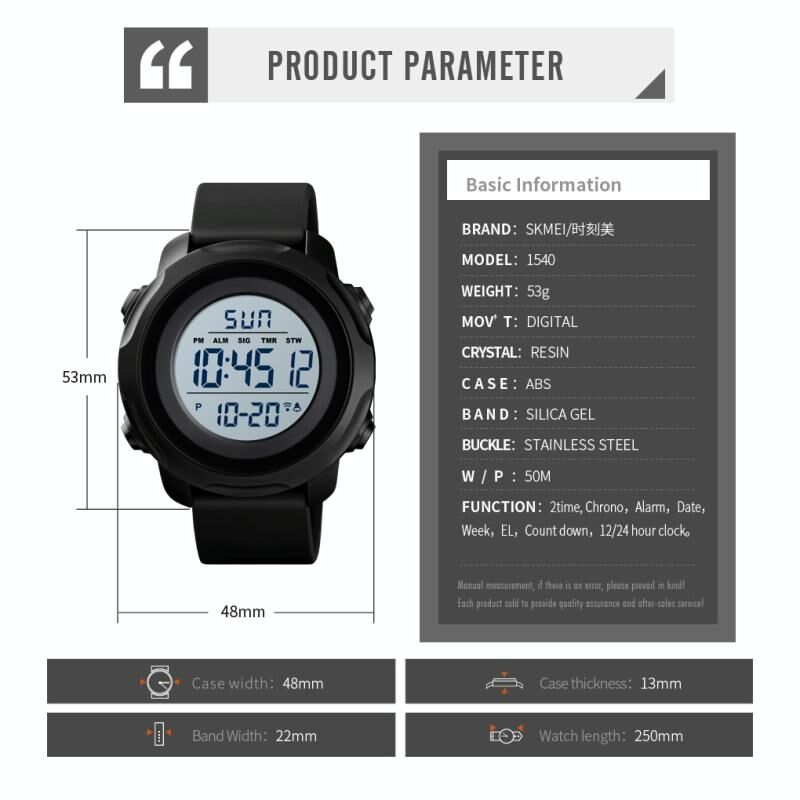 2. Ειδικές λειτουργίες: νυχτερινός φωτισμός, GMT διπλή ώρα, εβδομαδιαία εμφάνιση, ξυπνητήρι, χρονόμετρο, αντίστροφη μέτρηση, μηνιαία εμφάνιση, αναφορά ώρας ταυτόχρονα, σύστημα 12/24 ωρών