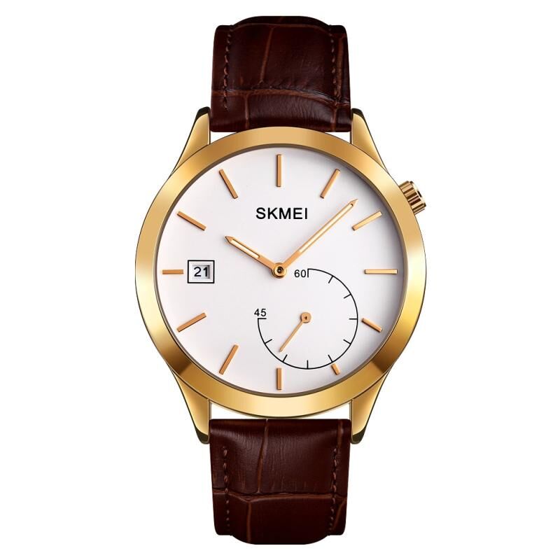 SKMEI 1581 Δημιουργικό Μόδα Ανδρικό Ρολόι Απλό Casual Εξωτερικού Αθλητισμού Αδιάβροχο Ρολόι Quartz Δύο Ακίδων (Χρυσό Καφέ) (SKMEI)