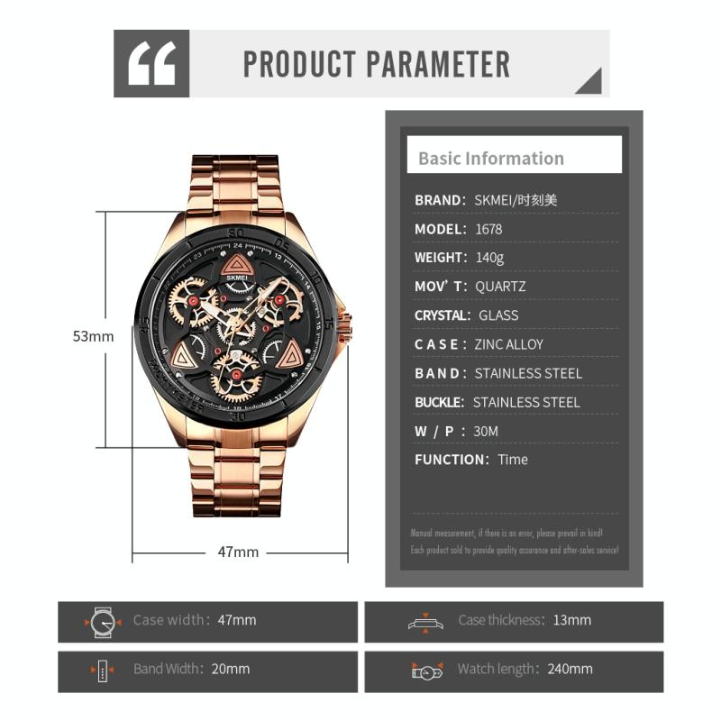 SKMEI 1678 Ανδρικό Αδιάβροχο Κουάρτζ Ρολόι με Περιστρεφόμενο Καντράν (Ασημένιο Κέλυφος, Μαύρη Επιφάνεια) (SKMEI)