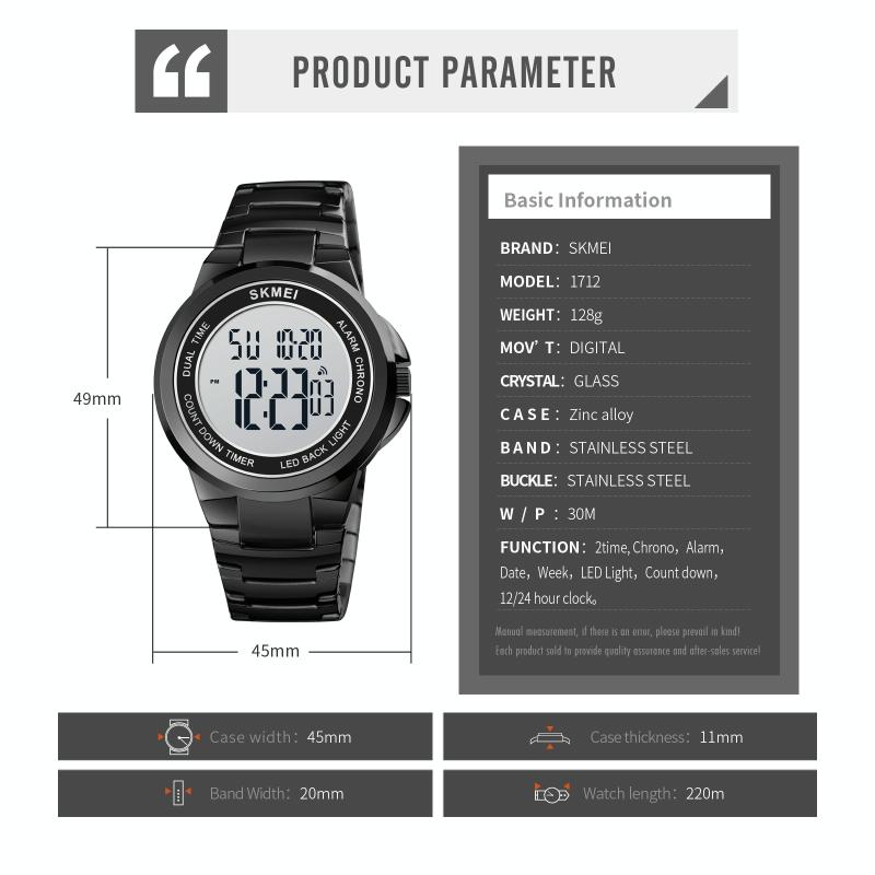 SKMEI 1712 Ψηφιακό ρολόι LED με διπλή ώρα, φωτεινή ένδειξη και λουρί από ανοξείδωτο ατσάλι (Ασημί και Μαύρο) (SKMEI)