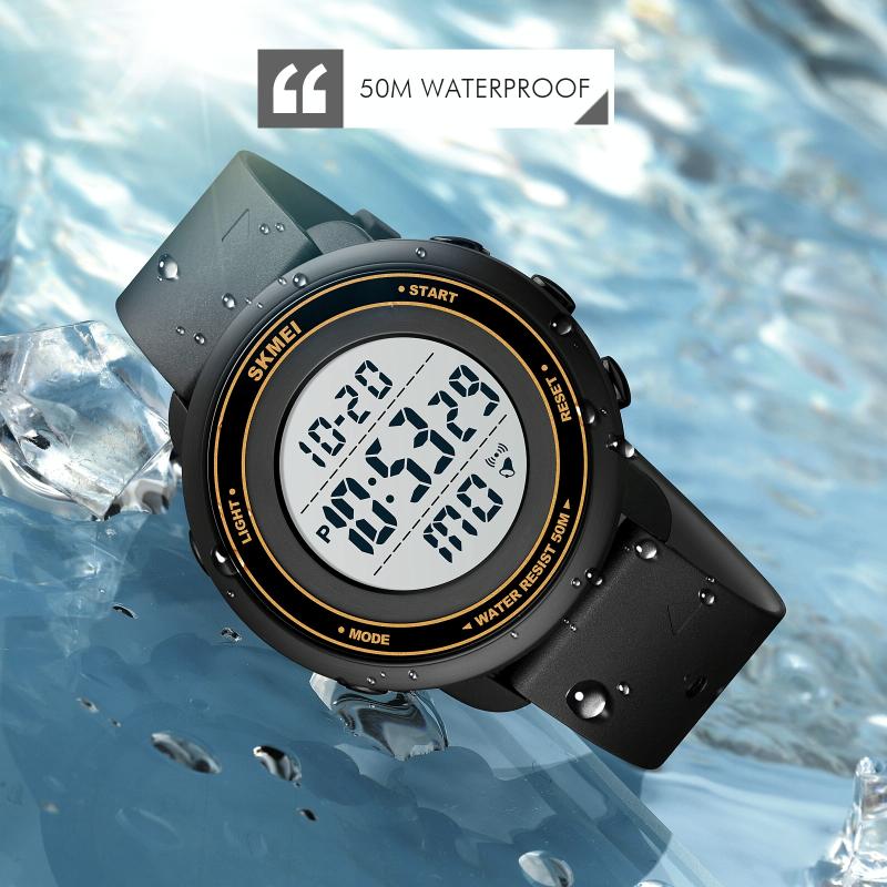 SKMEI 1736 Τριπλός Στρογγυλός Δίσκος Χρονισμού Ψηφιακή Ένδειξη LED Φωτεινό Ηλεκτρονικό Ρολόι (Χρυσό και Μαύρο) (SKMEI)